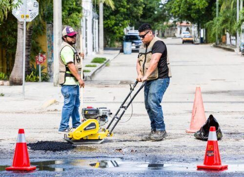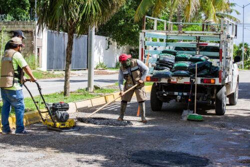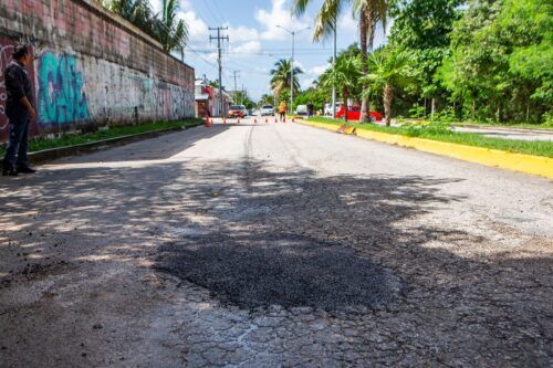 Playa del Carmen.— A marchas forzadas continúan los trabajos del programa de bacheo que tiene a su cargo la Secretaría de Servicios Públicos Municipales en las principales avenidas de la ciudad, donde diariamente se atienden 180 metros cuadrados de reparaciones asfálticas.