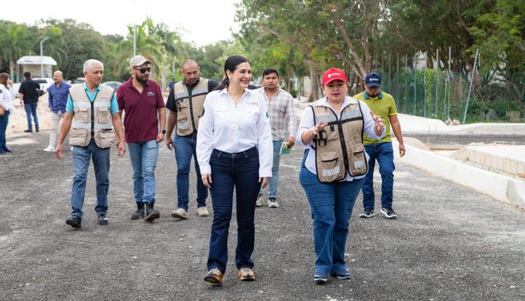 Playa del Carmen.— La presidenta municipal Estefanía Mercado supervisó los trabajos de construcción de 2 mil 700 metros cuadrados de pavimento en la avenida Mayapán, entre avenida Paseo del Mayab y calle Balam, en el fraccionamiento Tumben Chilam, en beneficio de más de 20 mil habitantes de la zona.