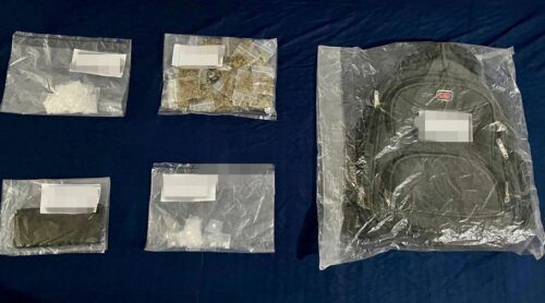 Como resultado, se decomisó una mochila gris, 35 bolsitas de plástico transparente que contenían vegetal verde con características similares a la marihuana; 30 bolsitas de plástico transparente que contenían fragmentos sólidos y cristalinos con características similares al cristal; 16 bolsitas de plástico transparente que contenían fragmentos sólidos color blanco con características similares a la piedra; y un teléfono celular.