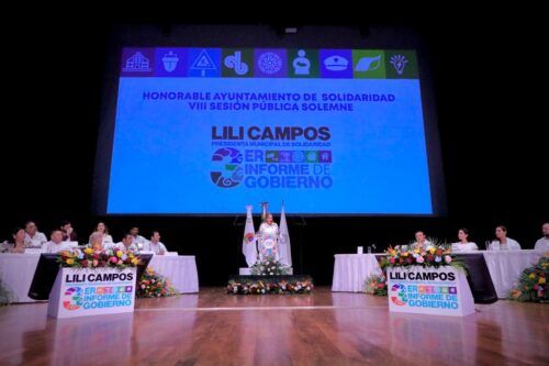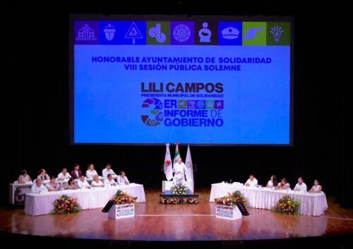 Playa del Carmen. – Ante las y los solidarenses, la presidenta municipal Lili Campos rindió su Tercer Informe de Gobierno, donde afirmó dejar avances significativos en diversos ámbitos, destacando la seguridad como uno de los pilares fundamentales en la gestión. “Hemos cumplido con hechos para que en cada colonia y en cada hogar de Solidaridad se vean reflejados los resultados. Unidos renovamos Solidaridad y lo seguiremos haciendo”.