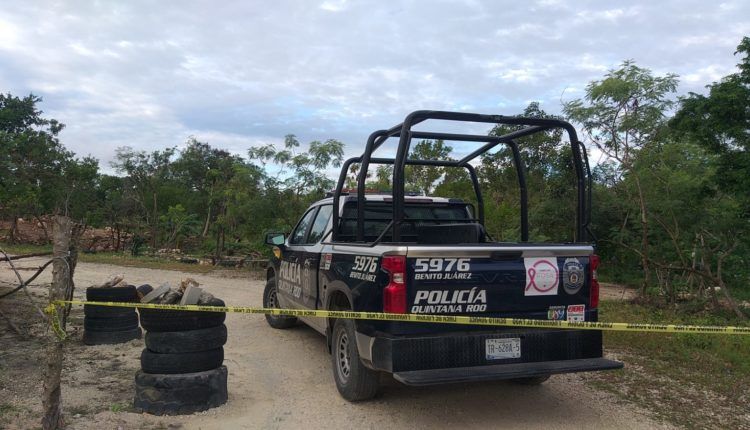 Cancún, a 21 de octubre de 2021.- El cuerpo de un hombre con un disparo en la cabeza y envuelto en una lona blanca, fue encontrado esta mañana en un camino de terracería de la colonia cuatro hermanos localizada en la Región 243.