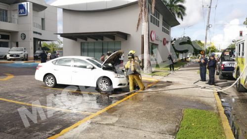 El evento se registró aproximadamente a las 9 horas de ayer cuando una joven de limpieza de la Plaza se dio cuenta cuando del vehículo, tipo Sentra, blanco, matricula USV314G, salía mucho humo del cofre