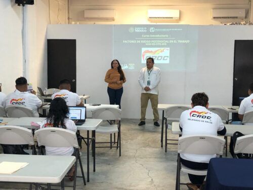 Cancún.- A fin de identificar, prevenir y atender factores de riesgo psicosocial de las y los trabajadores de la zona continental de Cancún, los delegados de salud del sindicato de la CROC concluyeron con el curso de capacitación de la NOM-035-STPS-2018.