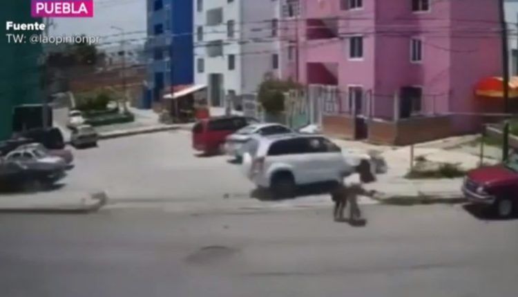 Puebla, a 24 de junio de 2021.-En la grabación, se observa que el conductor, en presunto estado de ebriedad, arrolla a los menores de 6 y 17 años, con una camioneta blanca marca Suzuki