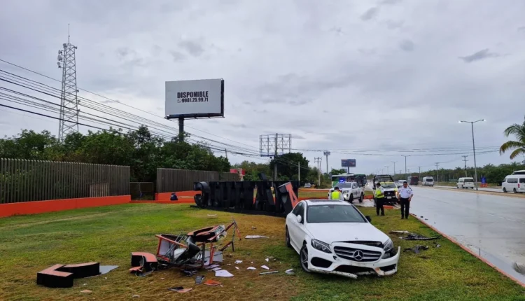 Cancún.- Un aparatoso accidente de tránsito se registró esta mañana afuera de la Universidad Anáhuac de Cancún, ubicada sobre el Boulevard Luis Donaldo Colosio.