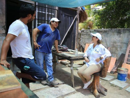 Acompañada de Faustino Uicab, dirigente estatal del blanquiazul, Kira Iris sigue recogiendo las quejas y peticiones de los playenses, quienes piden que mejore el tema de la seguridad.