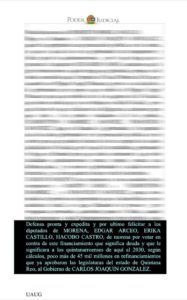 En la audiencia que inició ayer miércoles y se extendió hasta la mañana de este jueves, Roberto Borge manifestó, literal: “Quiero felicitar a los diputados de Morena (incondicionales de Marybel Villegas), Edgar Arceo (sic), Erika Castillo, Cobos Castro (sic), por votar en contra de este refinanciamiento que significa deuda”, y después manejó “según cálculos” las mismas cifras que ha estado difundiendo Villegas en sus redes sociales, para manipular a la población y confrontarla con el actual gobierno estatal.