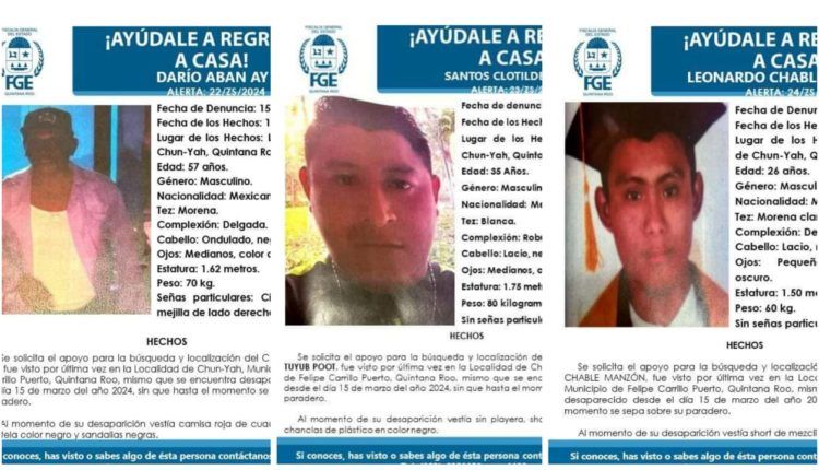 Felipe Carrillo Puerto. – La Fiscalía General del Estado (FGE) activó las fichas de búsqueda para los tres hombres que fueron privados de su libertad, durante la madrugada del viernes en Chun-Yah, una comunidad maya en el municipio de Felipe Carrillo Puerto.