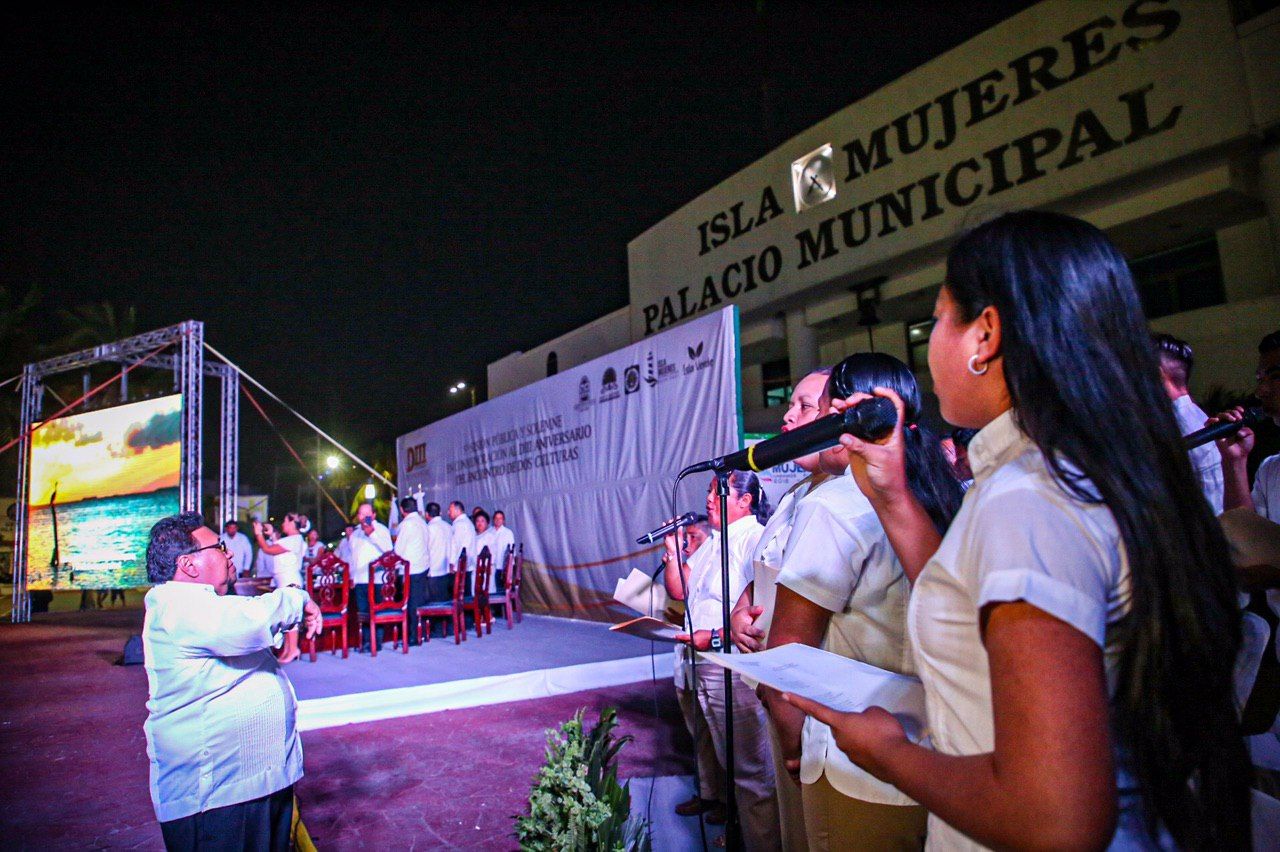 Por su parte, Juan Carrillo Soberanis, señaló la importancia de mantener vivas las tradiciones, la cultura e identidad del municipio isleño, por lo que cada año se celebra con orgullo que en el año de 1517 un grupo de españoles arribaran a la ínsula y la bautizaran con el nombre de “Isla de Mujeres” con el paso del tiempo “Isla Mujeres” debido a la gran cantidad de estatuillas con forma de mujer que encontraron en el adoratorio a la Diosa Maya Ixchel.