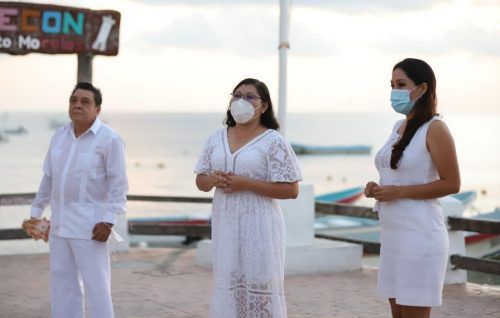 Al amanecer, se llevó a cabo una ceremonia para conmemorar el Día Internacional de la Paz, que estuvo encabezada por la presidenta y la directora general del Sistema para el Desarrollo Integral de la Familia (DIF) de Puerto Morelos, Adriana Nava Gómez y Yamili Alvarado Crespo, respectivamente.