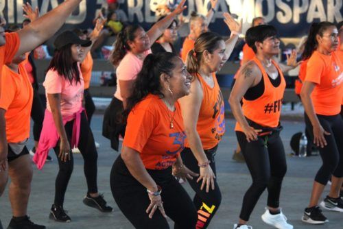 Playa del Carmen.- Con el objetivo de compartir un mensaje fuerte y claro a la sociedad solidarense, participantes del programa Actívate y Renuévate por Solidaridad se reunieron en el domo del parque Lázaro Cárdenas, ubicado en la colonia Colosio, para participar en la mega clase de activación física en el marco del Día Naranja, en el que se conmemora la lucha contra la violencia hacia la mujer, fue una tarde de ritmo y diversión en la que la música fue el elemento principal de la congregación.