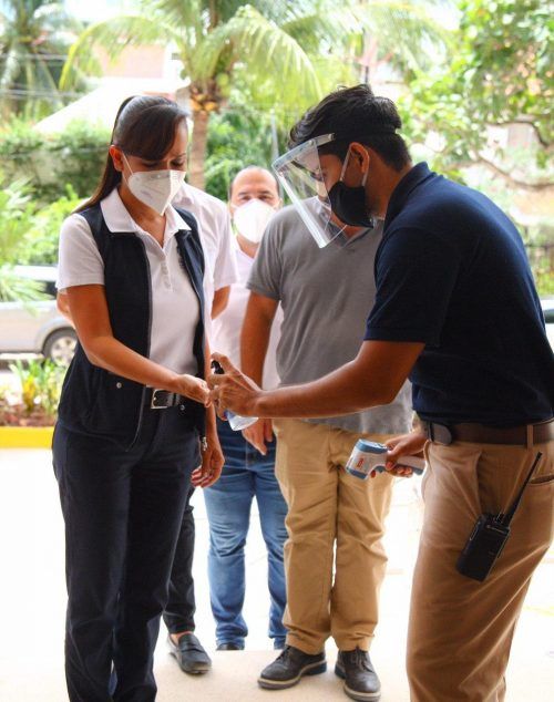 Puerto Morelos, Quintana Roo, 22 de julio de 2020.- La presidenta municipal Laura Fernández Piña constató esta tarde los protocolos sanitarios que se llevan a cabo en hoteles de Puerto Morelos, como parte de las acciones para proteger la salud de trabajadores y turistas en la nueva normalidad que se vive en el destino.