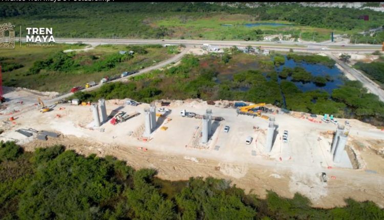• Avanzan base de mantenimiento cerca de estación Teya-Mérida, libramiento Campeche, levantamiento de pilotes en Víaducto de la Olla, y paso superior ferroviario cerca de Sudzal, Yucatán