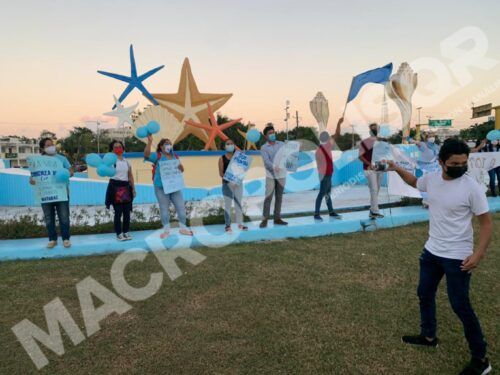 Cancún, Quintana Roo, 1 de marzo 2021.-Un grupo de ciudadanos de organizaciones provida se manifestaron la tarde de hoy en la glorieta de El Ceviche, donde pidieron al congreso echar abajo la propuesta del aborto.