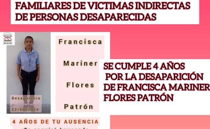 Playa del Carmen. – El colectivo Madres Buscadoras por Quintana Roo convocó en sus redes sociales a una marcha pacífica para el próximo 22 de junio, fecha en que se cumplen cuatro años de la desaparición de Francisca Mariner Flores Patrón.