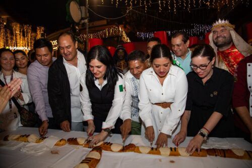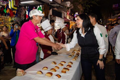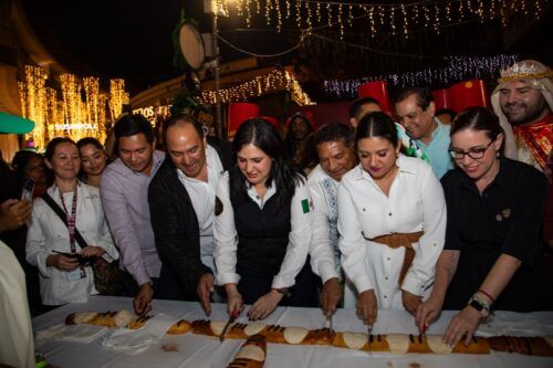Playa del Carmen.— La presidenta municipal Estefanía Mercado cortó esta noche la monumental Rosca de Reyes de 1 kilómetro de largo que se ofreció en la Quinta Avenida a familias locales y visitantes de diversas partes del país y el mundo.