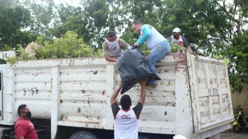 Durante jornada se recolectó basura, cacharros, troncos y ramas. Se llenó un camión de volteo de 14 metros cuadrados, así el plantel luce limpio y sin riesgo para los estudiantes. Este kinder sera también sanitizado la semana próxima.
