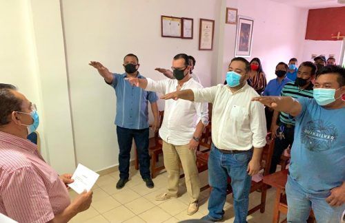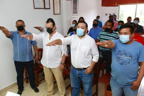 Tulum, Quintana Roo, 03 de diciembre de 2020.- El secretario general de la CROC en Quintana Roo, Martín de la Cruz. Gómez tomó protesta a los integrantes del Comité Municipal del Sindicato de Transportistas de la CROC en Tulum, que preside como secretario general Juan Pablo Zetina Tejeda.