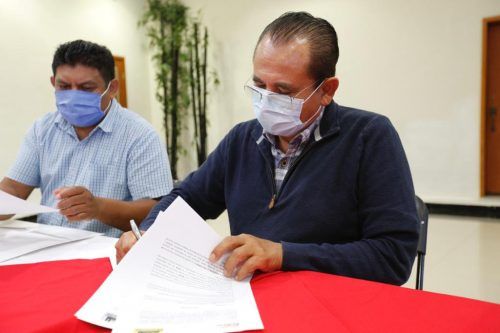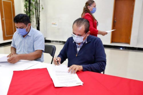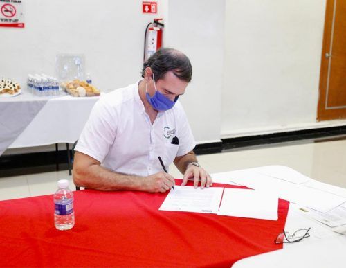 Playa del Carmen, Quintana Roo, 10 de diciembre 2020.- El secretario general de la CROC en Quintana Roo, Martín de la Cruz Gómez presidió la firma de convenio de colaboración entre la CROC y las empresas Solecyto y, Martín Industrial, convenio mediante el cual ambas empresas ofrecerán atractivos descuentos, precios competitivos a las y los afiliados que presenten su credencial de afiliación.