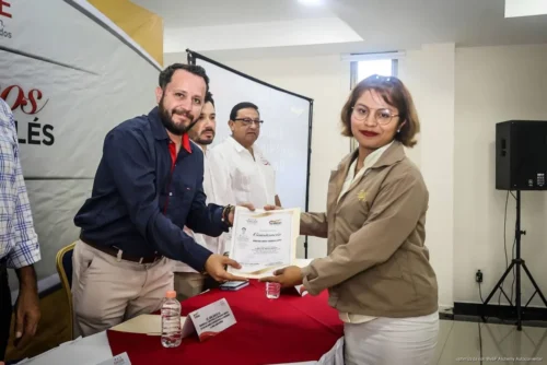 Durante el evento, el Uri Carmona Islas, en representación del secretario general de la organización Martín de la Cruz Gómez, encabezó la entrega de constancias a las y los trabajadores que concluyeron la capacitación.