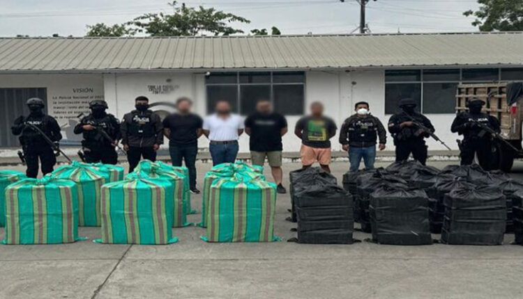 Portoviejo, Ecuador. – En una operación antidrogas llevada a cabo por la Policía Nacional de Ecuador, dos ciudadanos mexicanos, un colombiano y un ecuatoriano fueron detenidos en la ciudad de Portoviejo, capital de la provincia de Manabí. La Unidad Nacional de Investigación de Sustancias Químicas (UNSQ) realizó el operativo el sábado en el sector Pueblo Nuevo de Portoviejo, donde tras allanar una vivienda se encontraron cerca de 1.5 toneladas de clorhidrato de cocaína.