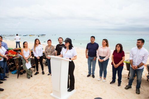 Playa del Carmen. — Mantener nuestras playas limpias, libres de sargazo y residuos sólidos no es sólo una cuestión de imagen y mucho menos simulación, es un esfuerzo que requiere el apoyo de todos, dijo esta mañana la presidenta municipal Estefanía Mercado, en la entrega de herramientas y equipo al personal de la Zona Federal Marítimo Terrestre (Zofemat), en playa Pelícanos.