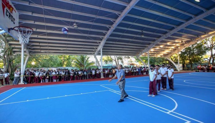 Playa del Carmen.- Con el firme compromiso por la educación y que jóvenes estudiantes tengan mejores lugares de espaciamiento, Martín de la Cruz Gómez, Secretario General de la Confederación Revolucionaria de Obreros y Campesinos (CROC) en Quintana Roo, hizo entrega de la cancha deportiva rehabilitada en la escuela Secundaria Técnica Nº 23 Juan Rulfo.