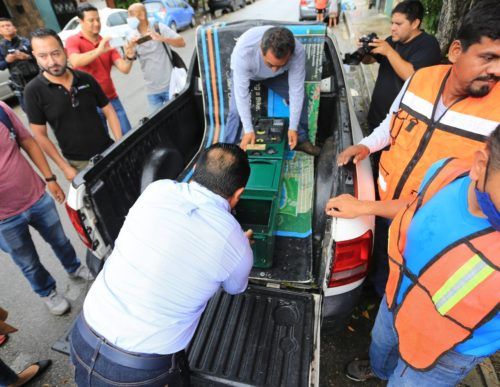 Playa del Carmen, Quintana Roo, 1 de septiembre de 2022.- La presidenta municipal Lili Campos supervisó hoy el retiro de 18 parquímetros, lo que equivale a 800 cajones dispuestos en las colonias Colosio y Zazil Ha, en respuesta a la demanda ciudadana, respaldada con una solicitud de cinco mil firmas de vecinos.