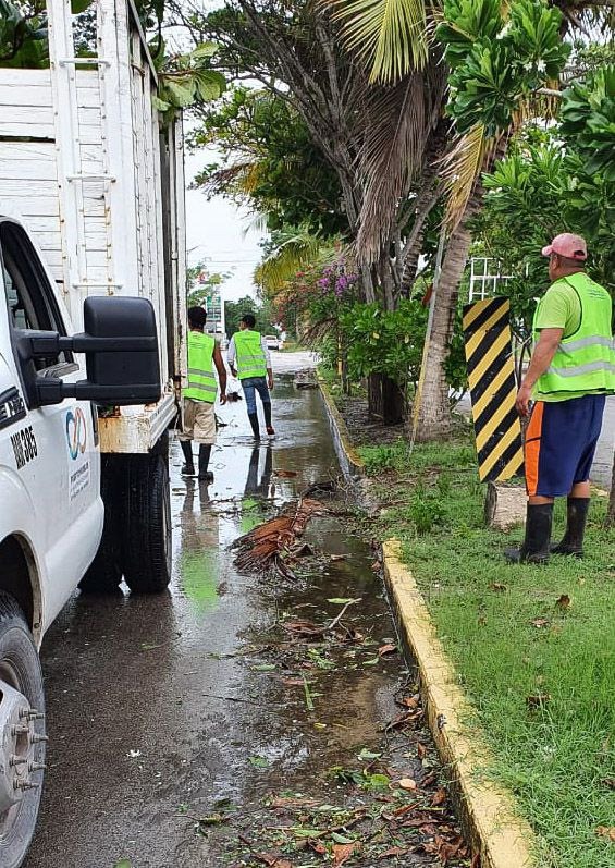 Puerto Morelos, Quintana Roo, 6 de junio de 2020.- Brigadas de Servicios Públicos y de otras dependencias del Ayuntamiento cumplieron este viernes y sábado una intensa labor para atender los efectos de las lluvias y vientos que generó a su paso sobre la Península la ahora tormenta tropical “Cristóbal”, informó la presidenta municipal Laura Fernández Piña.