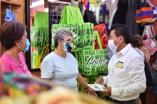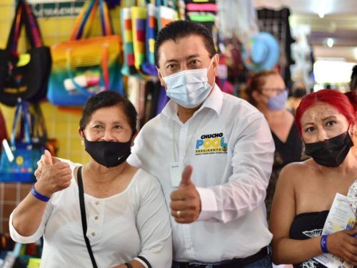 Cancun, a 26 de mayo de 2021.- Con el respaldo total de los más de 200 locatarios del mercado Artículo 115 Constituciona, conocido popularmente como “mercado 28”, Chucho Pool, candidato de PAN-PRD y Confianza por Quintana Roo a la presidencia municipal de Benito Juárez, se comprometió a promover el sitio , reencarpetar sus cuatro estacionamientos, brindar mayor seguridad, mejorar el servicio de recolección de basura y restablecer la ruta de transporte público de la zona hotelera hacia este emblemático lugar con casi 40 años de vida, para que el turismo llegue directamente.