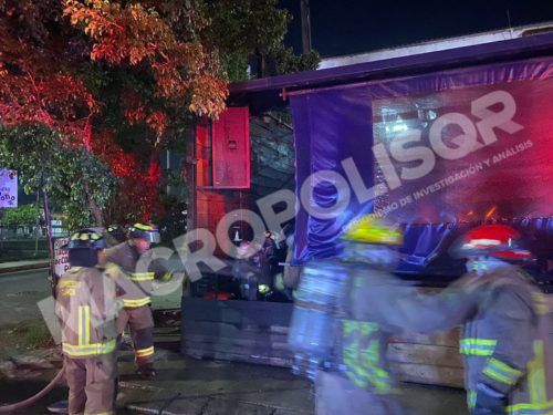 Cancún, a 14 de septiembre de 2021.- La madrugada de este martes bomberos acudieron a apagar el incendio del bar Las Micheladas del Tío Toño, ubicado en la Supermanzana 229, sobre la avenida Kabáh.