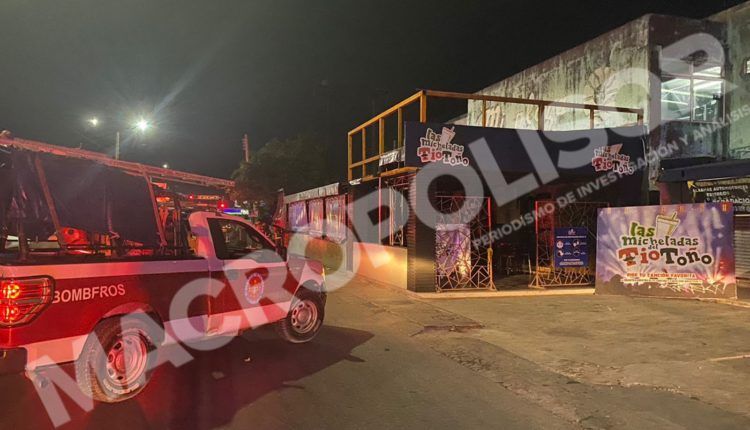 Cancún, a 14 de septiembre de 2021.- La madrugada de este martes bomberos acudieron a apagar el incendio del bar Las Micheladas del Tío Toño, ubicado en la Supermanzana 229, sobre la avenida Kabáh.