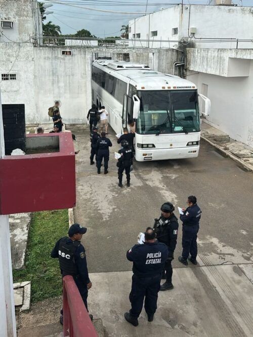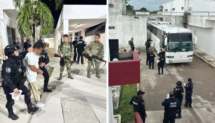 Cancún.- La Secretaría de Seguridad Ciudadana (SSC), en coordinación con la Secretaría de Marina (SEMAR), llevó a cabo el traslado interinstitucional de 43 Personas Privadas de la Libertad (PPL) desde el Centro Penitenciario de Benito Juárez hacia el Centro Penitenciario del municipio de Othón P. Blanco, en la ciudad de Chetumal.