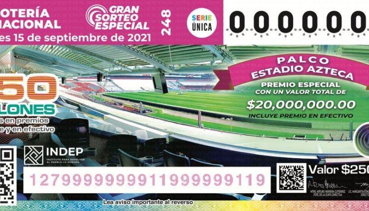 Con la oportunidad de ganar un palco en el estadio Azteca, el gobierno de México anunció gran sorteo especial 248, con 22 premios en especie y en efectivo para la población, el cual se llevará a cabo el próximo 15 de septiembre.