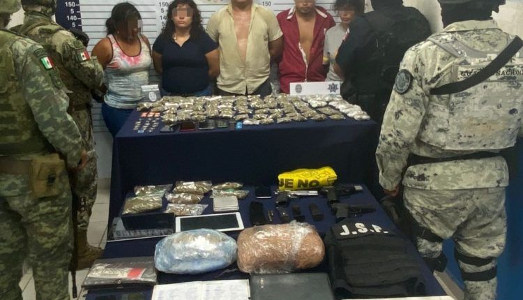 Los asegurados son José “N” de 32 años de edad, Miguel “N” de 22 años y Tila “N” de 38 años originarios de Chiapas, así como Sofía “N” de 26 de edad procedente de Veracruz y Erika “N” originaria de Yucatán, quienes fueron sorprendidos por los oficiales cuando intercambiaban bolsitas con posibles narcóticos afuera de un domicilio sobre la avenida Montes Azules.