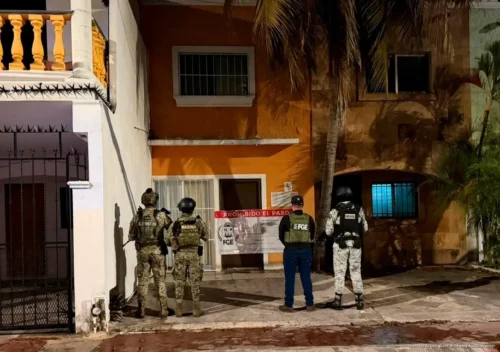 Autoridades de los tres órdenes de gobierno aseguraron un inmueble en Cancún donde presuntamente operaba una red de fraude con paquetes vacacionales; además, realizaron cateos en otros municipios con decomiso de posibles narcóticos.