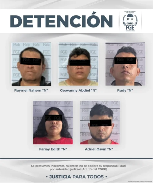 Las cinco personas detenidas y los indicios asegurados quedaron a disposición del Ministerio Público, que determinará su situación jurídica dentro del término constitucional.