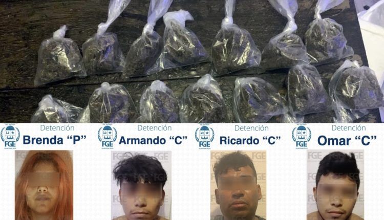 Policías ministeriales aseguran a cuatro personas, entre ellos una mujer, y varios paquetes de mariguana y cocaína