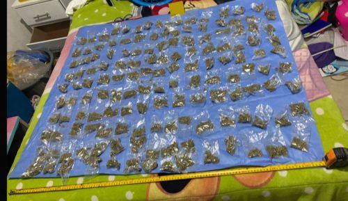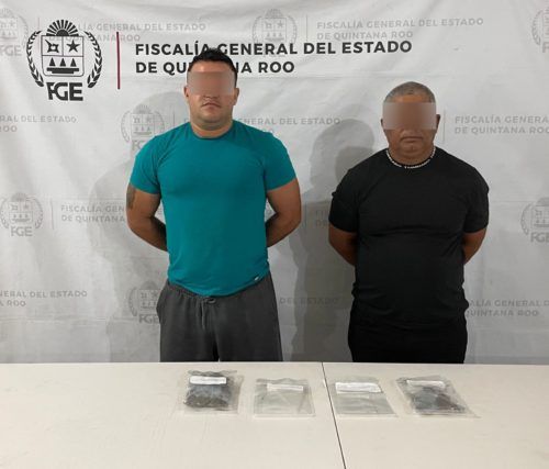 Por otra parte, durante el cumplimiento del mandamiento judicial a un inmueble ubicado en calle Cozumel de la colonia Primera Legislatura de Othón P. Blanco, los agentes aseguraron material vegetal verde y seco con características propias de la marihuana, diversas bolsitas con sustancia sólida de color rosado y un teléfono móvil.