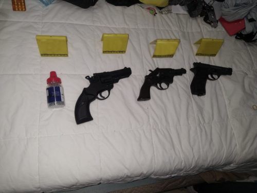 En el lugar se aseguraron tres armas de fuego de uso exclusivo del Ejército, la Armada y Fuerza Aérea; municiones de acero; bolsas con hierba verde y seca, con características parecidas a la marihuana y bolsas con sustancia sólida de color blanco similar a la droga conocida como cristal.