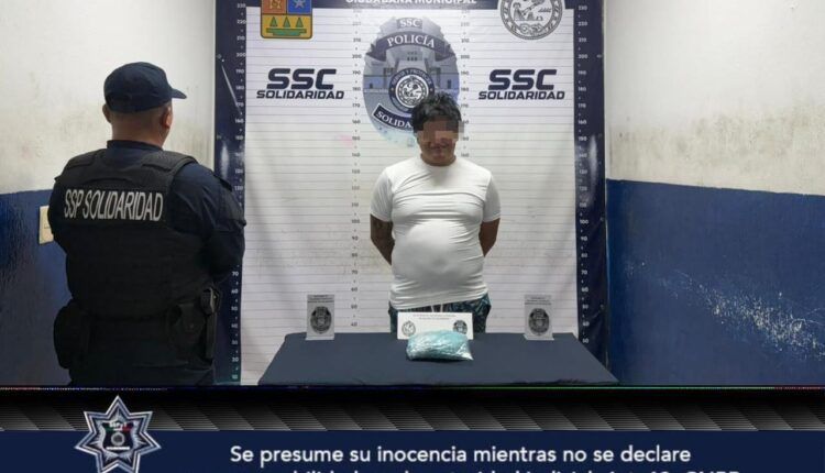Playa del Carmen. – Elementos de la Secretaría de Seguridad Ciudadana Municipal de Solidaridad aseguraron a Ismael “N”, de 23 años y originario de Chiapas, en posesión de una bolsa con hierba seca con características similares a la marihuana.
