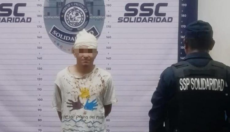 Playa del Carmen. – La Policía Municipal de Solidaridad aseguró a una persona por la posible comisión del delito de daños tras ser señalado de dañar un vehículo con una piedra, amenazar a una mujer y alterar el orden público.
