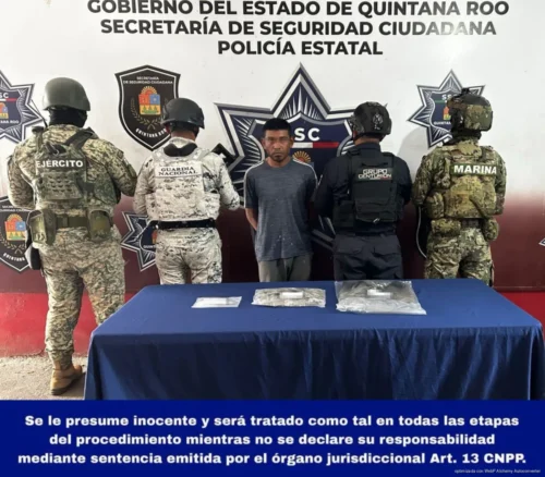 Los hechos ocurrieron sobre la avenida Tulum, en la supermanzana 65, donde los oficiales observaron al sujeto manipulando bolsitas con vegetal verde con características similares a la marihuana. Al notar la presencia policial, intentó huir, pero fue interceptado.
