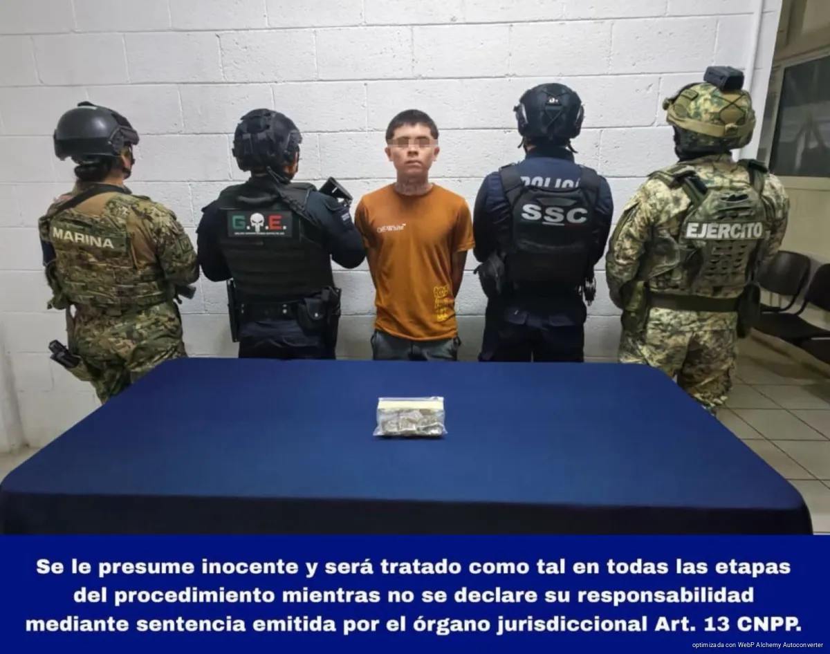 Cozumel, Quintana Roo, 27 de febrero de 2026.— En operativos interinstitucionales realizados en distintos puntos de Cozumel, elementos de la Secretaría de Seguridad Ciudadana, en coordinación con la Secretaría de Marina (Semar) y la Secretaría de la Defensa Nacional (Sedena), lograron la detención de dos hombres presuntamente implicados en delitos contra la salud.