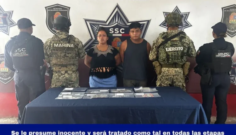 Benito Juárez, Quintana Roo.— Elementos de la Secretaría de Seguridad Ciudadana, en coordinación con personal de la Secretaría de Marina, detuvieron a José Miguel “N” y Nayeli Atziri “N”, presuntamente implicados en delitos contra la salud y quebrantamiento de sellos, en este municipio.