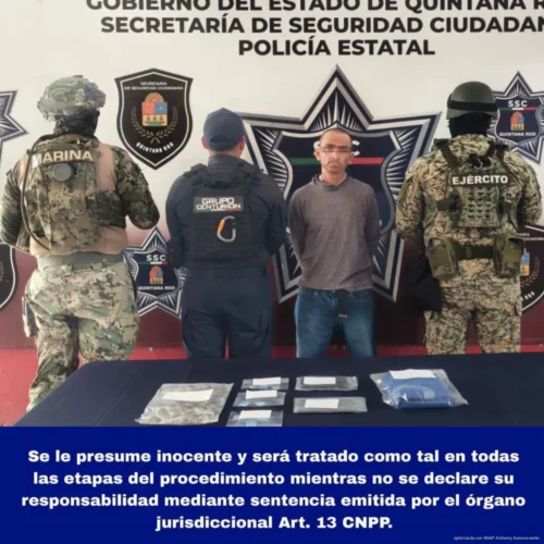 La detención ocurrió sobre la carretera Punta Sam, en Puerto Juárez, cuando los agentes detectaron a dos hombres intercambiando bolsitas con presunta droga. Uno logró escapar, mientras que el otro fue asegurado.