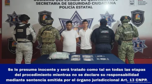 Finalmente, en otra intervención, fueron detenidos Roberto Carlos “N” y César Adrián “N”, quienes fueron sorprendidos intercambiando bolsitas con presunta droga en la supermanzana 66. A estos se les aseguraron 44 dosis, dinero en efectivo y teléfonos celulares.