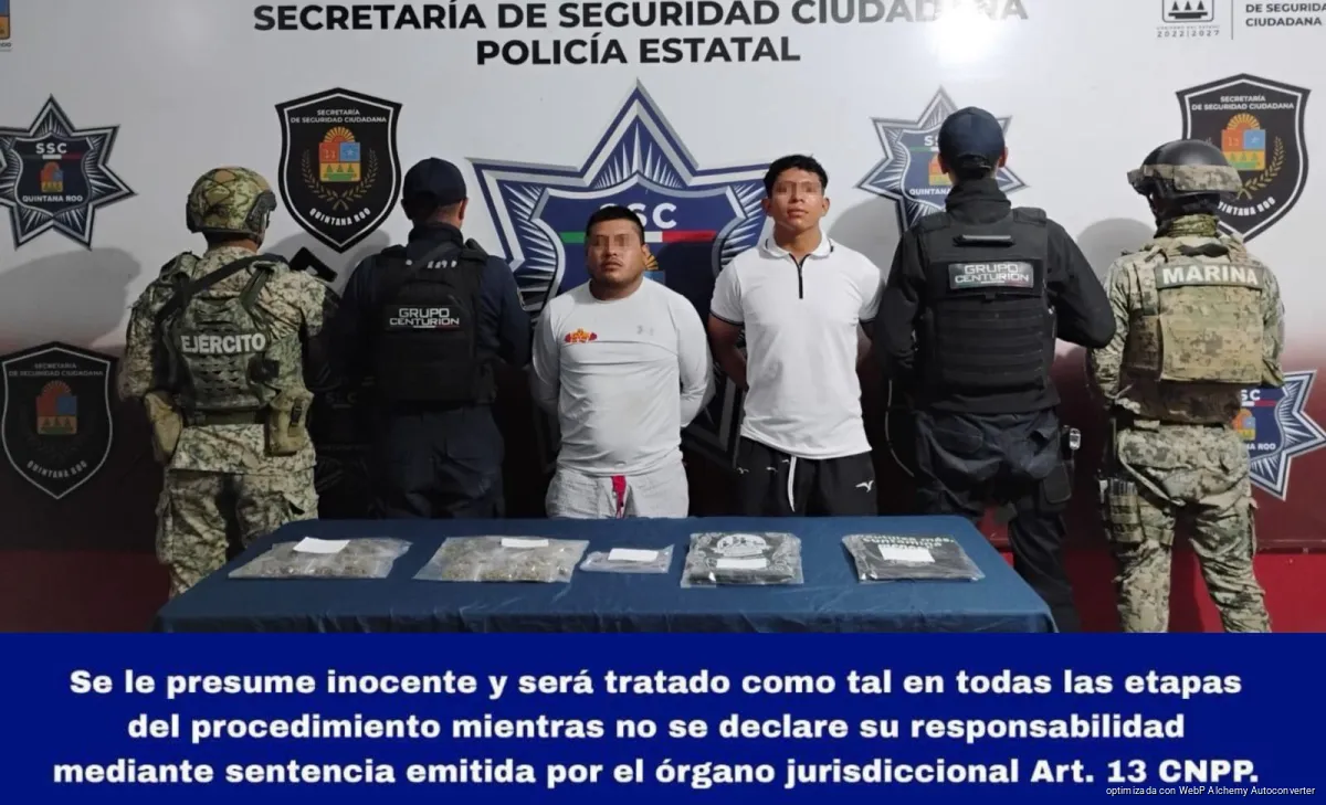 Lázaro Cárdenas, Quintana Roo.— Elementos de la Secretaría de Seguridad Ciudadana, en coordinación con la Secretaría de Marina y la Secretaría de la Defensa Nacional, detuvieron a dos personas presuntamente implicadas en delitos contra la salud, en la isla de Holbox.