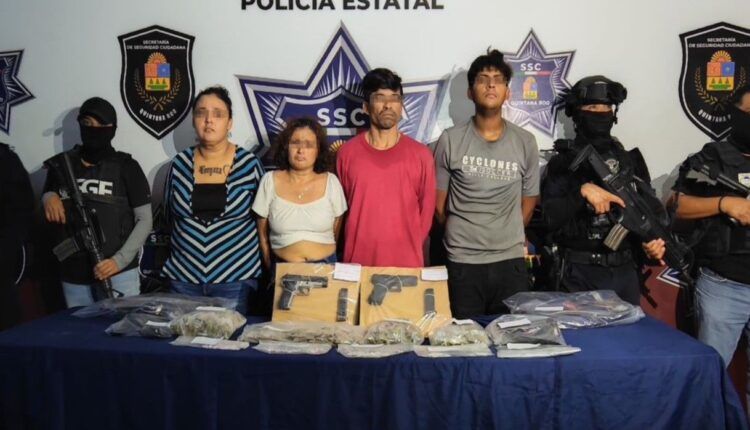 Cancún. – Cuatro personas fueron detenidas por su presunta implicación en delitos contra la salud y portación de armas de fuego durante un operativo de vigilancia realizado por elementos de la Secretaría de Seguridad Ciudadana, en colaboración con la Fiscalía General del Estado.