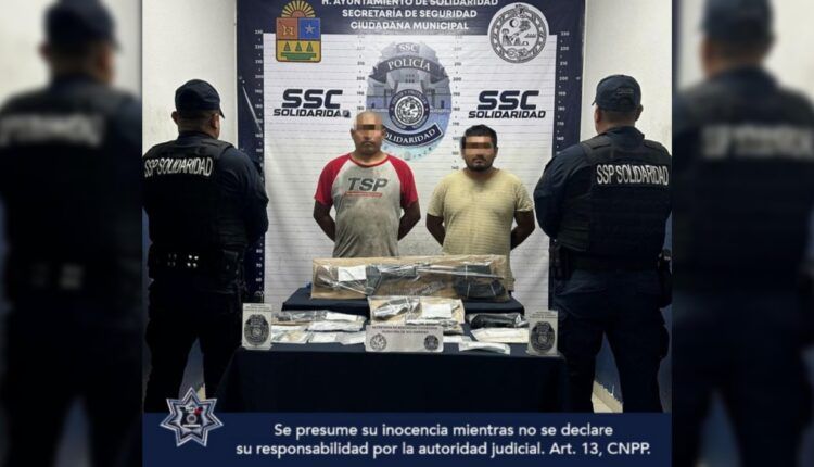 Playa del Carmen. – La Secretaría de Seguridad Ciudadana Municipal de Solidaridad detuvo a dos hombres en la colonia Luis Donaldo Colosio por presuntos delitos contra la salud y violación a la Ley Federal de Armas de Fuego y Explosivos.